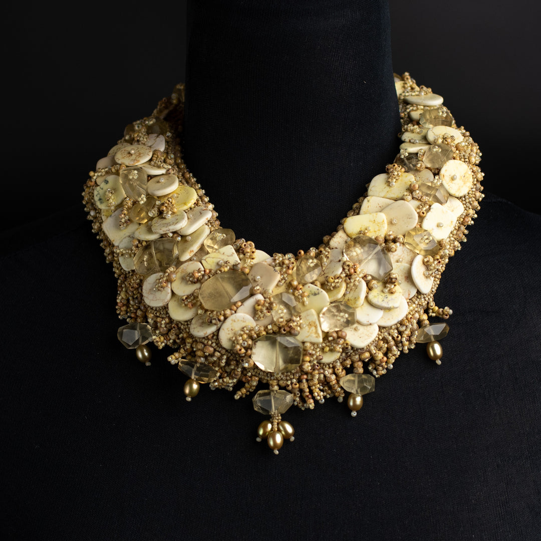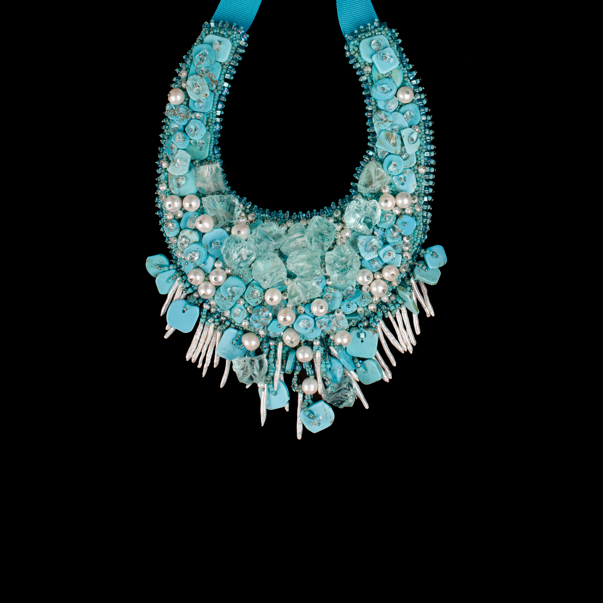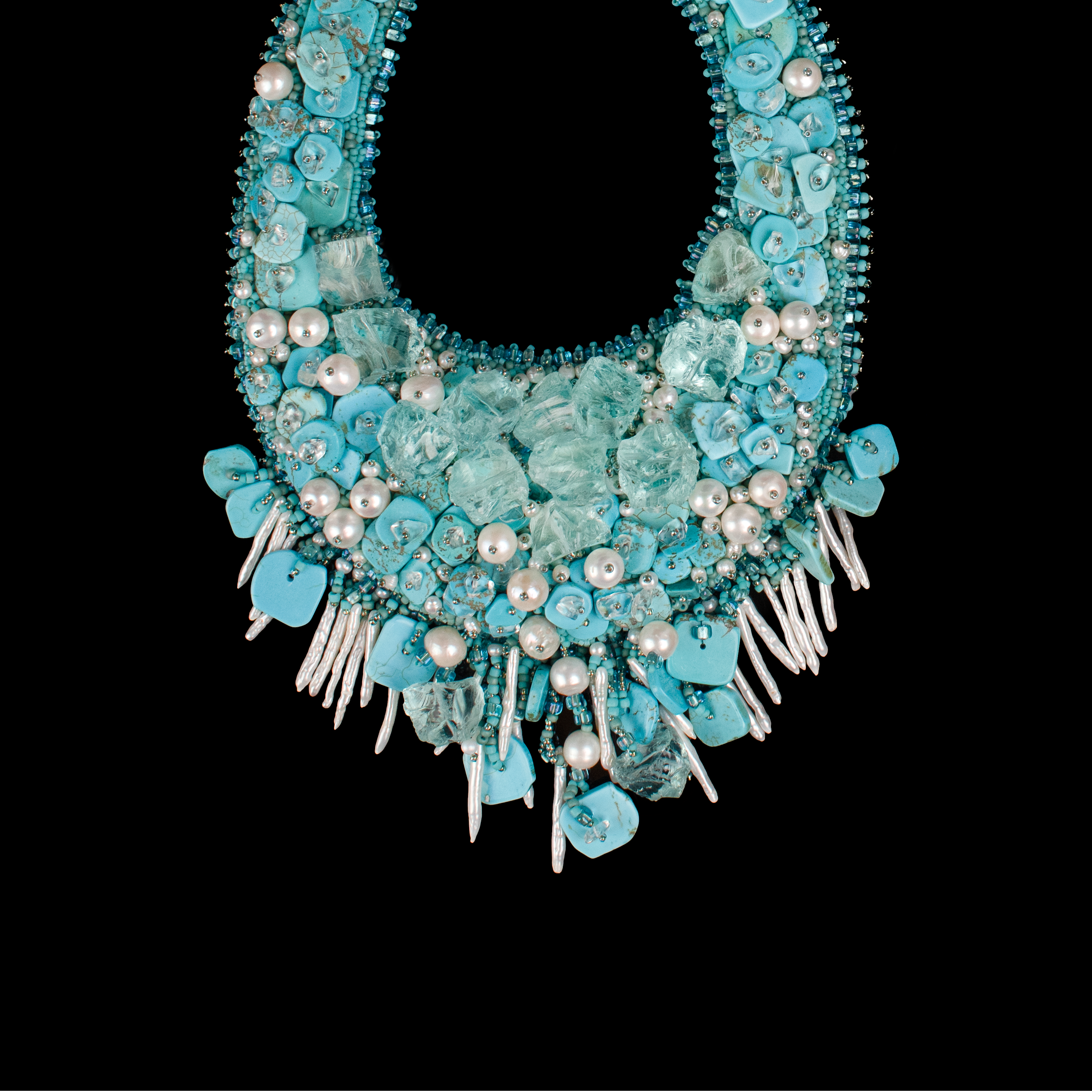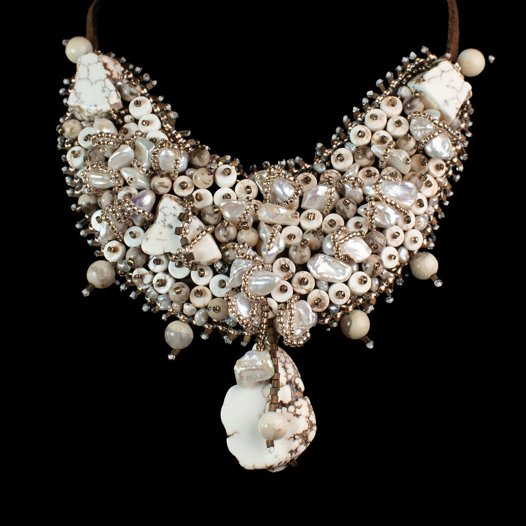 Each bead is hand sewn with the finest of beading thread.